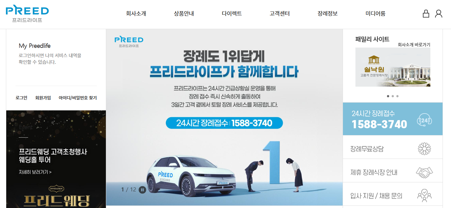 프리드라이프는 대한민국 상조 업계의 리더로서, 고객의 삶의 마지막 순간을 품격 있게 마무리할 수 있도록 다양한 서비스를 제공하는 기업입니다. 장례뿐 아니라 웨딩, 여행, 어학연수 등 다양한 전환 서비스를 제공하며 고객의 라이프사이클 전체를 케어하고 있습니다.